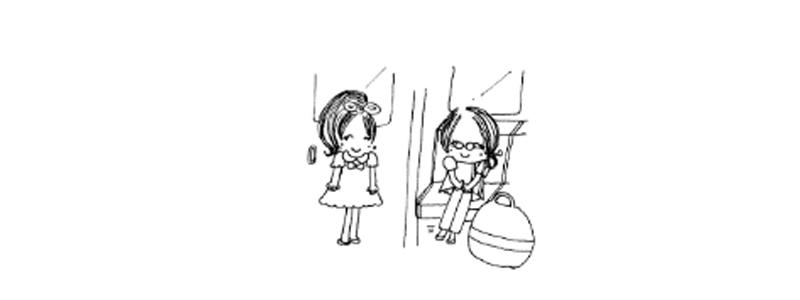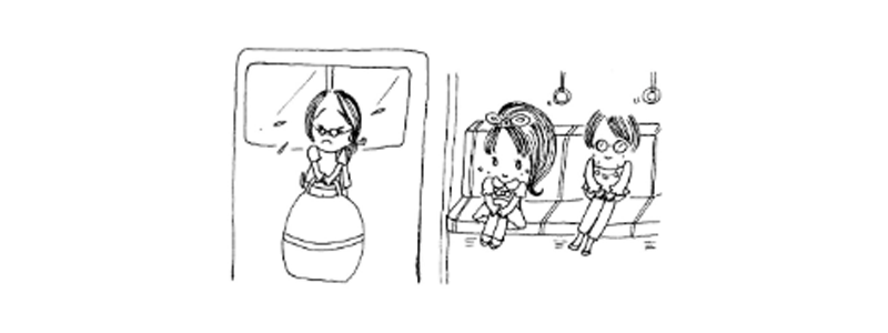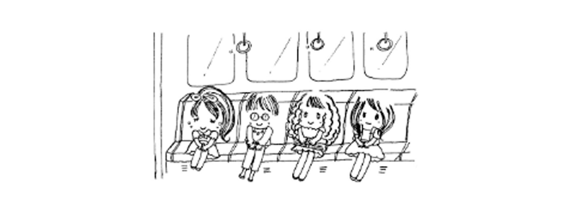 ④キョコちゃんはそのおばあさんに席を譲りました。 ー ありがとう ー